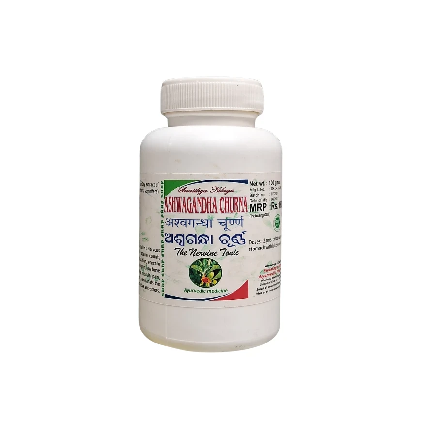 ASHWAGANDHA CHURNA is a traditional Ayurvedic formulation known for its therapeutic properties. It is commonly used to support various health concerns and promote overall wellness. Prepared with time-tested ingredients, ASHWAGANDHA CHURNA helps maintain the natural balance of the body and enhances vitality when taken regularly. Ideal for use in holistic and preventive healthcare, this remedy can be a valuable addition to your Ayurvedic lifestyle.