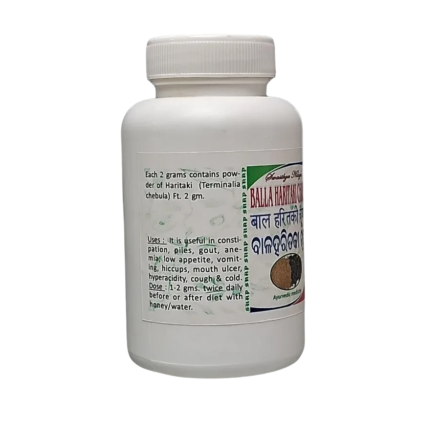 BALAHARITAKI CHURNA 100G is a traditional Ayurvedic formulation known for its therapeutic properties. It is commonly used to support various health concerns and promote overall wellness. Prepared with time-tested ingredients, BALAHARITAKI CHURNA 100G helps maintain the natural balance of the body and enhances vitality when taken regularly. Ideal for use in holistic and preventive healthcare, this remedy can be a valuable addition to your Ayurvedic lifestyle.