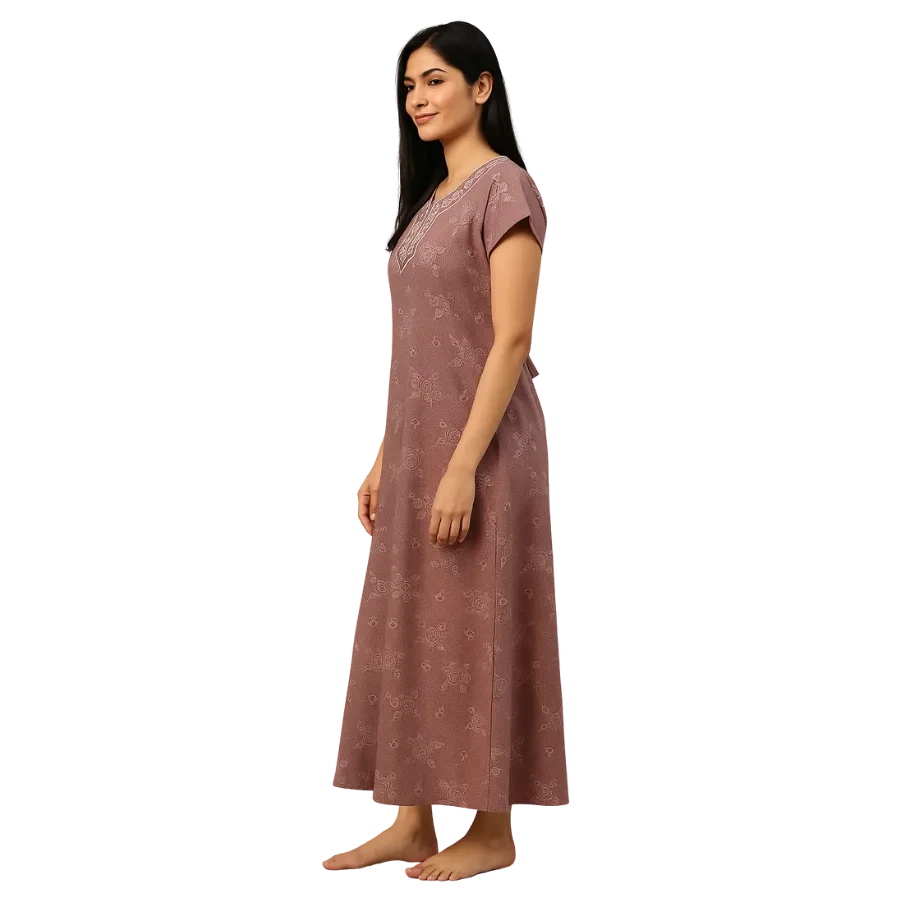 With short sleeves, a soft neckline, and flowy drape, this nighty is ideal for daily wear, home comfort, and warm-weather nights.