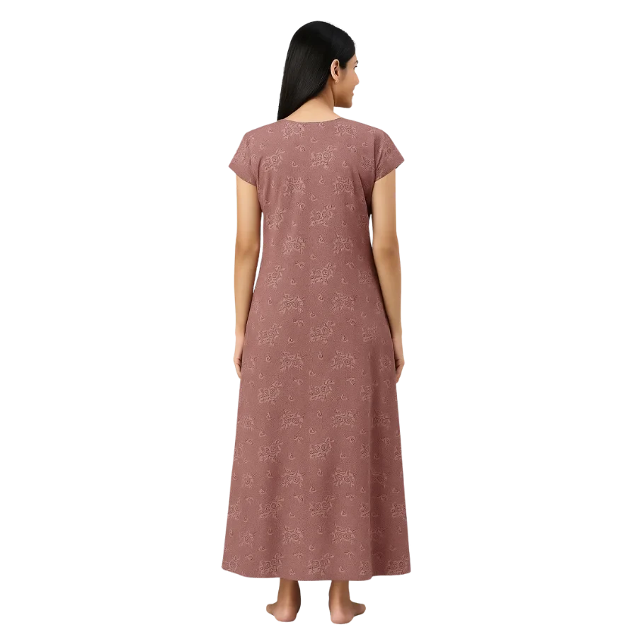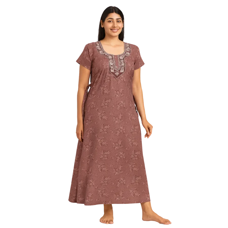 Experience all-day ease and night-long comfort with our Beige Blossom Comfort Cotton Nighty—a beautifully designed piece crafted for women who love style and softness together.