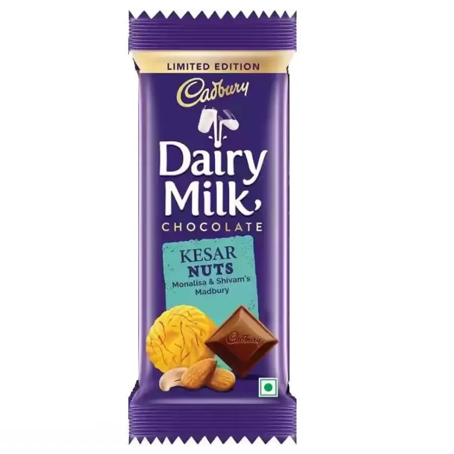 Cadbury Dairy Milk Kesar Nuts is a limited-edition chocolate bar that blends velvety smooth Dairy Milk chocolate with the rich flavor of kesar peda (saffron-infused Indian sweet) and a hint of crunchy nuts . Each 36 g bar delivers an indulgent, exotic twist to the classic Chocolate you love.