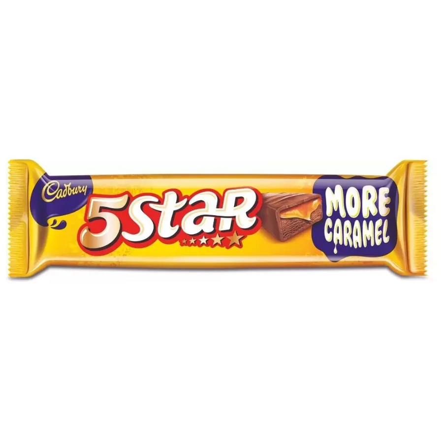 Cadbury 5 Star is a beloved chewy caramel and nougat chocolate bar, coated in Cadbury’s signature smooth milk chocolate. The 22 g size offers a satisfying, pocket-sized indulgence perfect for on-the-go snacking