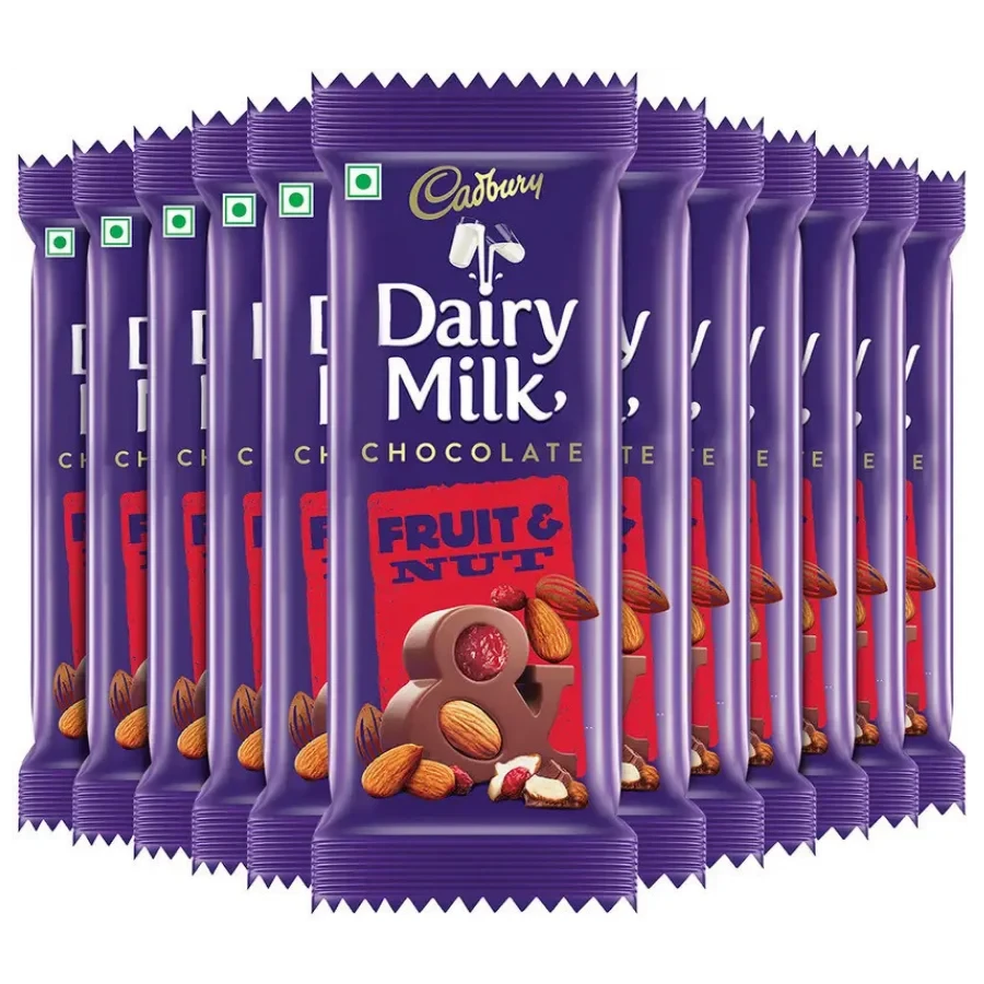 Cadbury Dairy Milk Fruit & Nut is the classic Cadbury Dairy Milk milk‑chocolate bar studded with real raisins and chopped almonds.