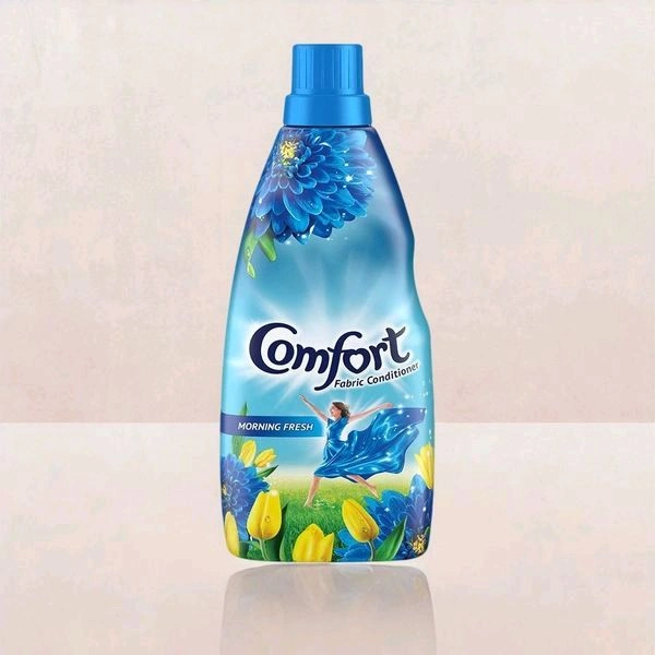 This refers to the 'Comfort' brand of fabric conditioner. The list shows multiple variants like 'BLUE', 'DESIRE', and 'LILY FRESH', with a size of `430 ml'. It's an after-wash product used to add softness and fragrance.