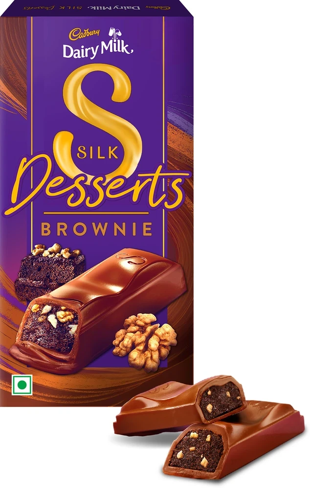 Cadbury Dairy Milk Silk Desserts Brownie blends velvety smooth Dairy Milk Silk chocolate with a decadent walnut‑studded brownie center. Each bar delivers a luxurious fusion of creamy milk chocolate and rich, gooey brownie, designed to satisfy dessert cravings in every indulgent bite