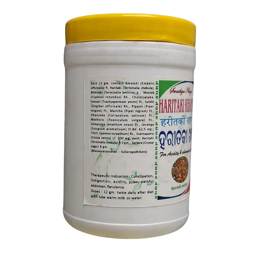 HARITAKI KHANDA is a traditional Ayurvedic formulation known for its therapeutic properties. It is commonly used to support various health concerns and promote overall wellness. Prepared with time-tested ingredients, HARITAKI KHANDA helps maintain the natural balance of the body and enhances vitality when taken regularly. Ideal for use in holistic and preventive healthcare, this remedy can be a valuable addition to your Ayurvedic lifestyle.
