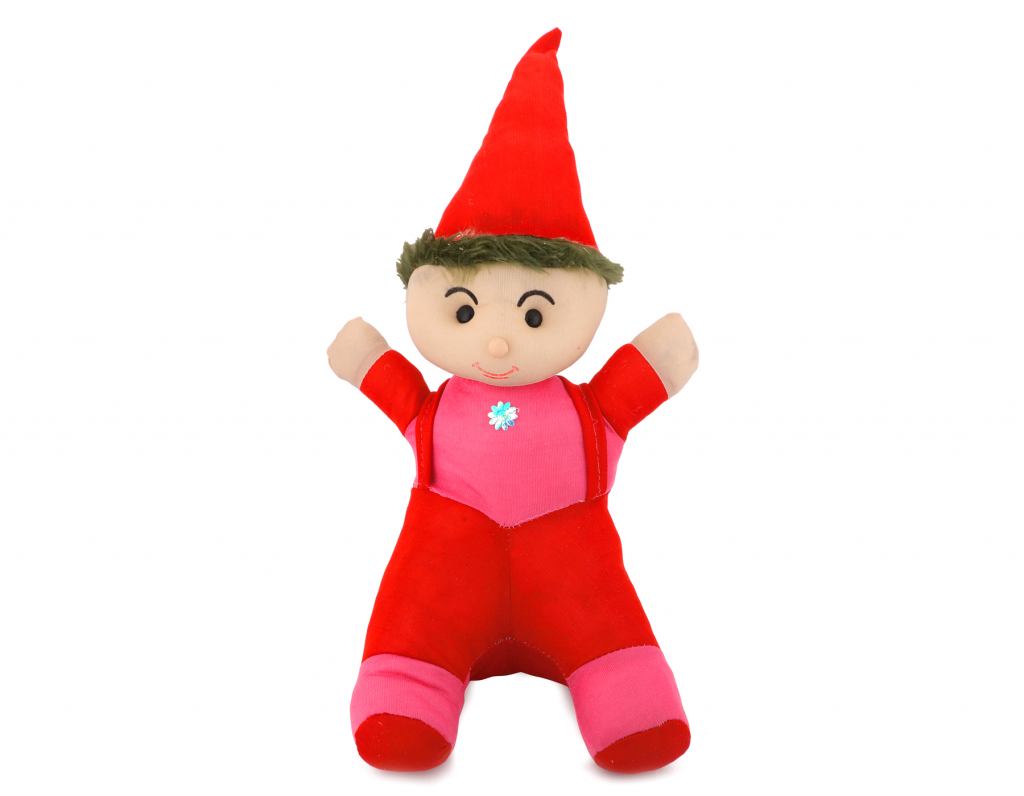 A medium-sized teddy bear with a fun joker cap. Great for playtime, decorations, or as a comforting companion.