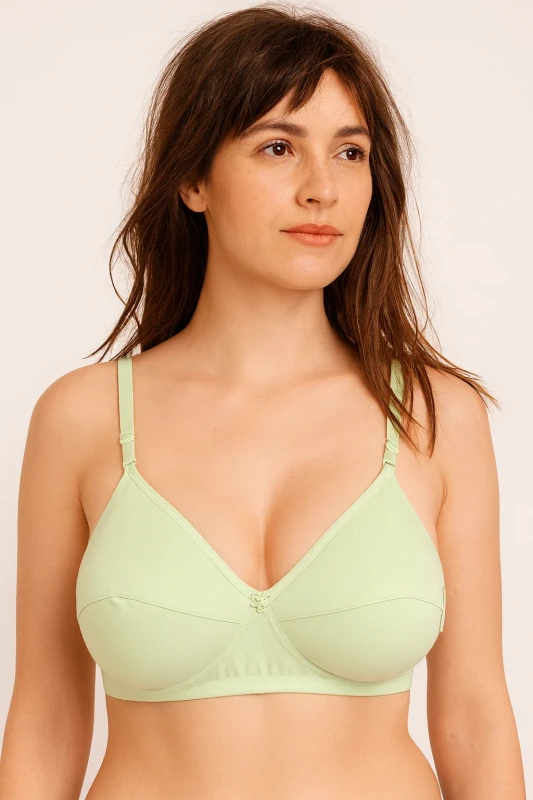 is typically described as a comfortable, non-wired, and non-padded everyday bra or low-impact sports bra. It is generally made from a breathable poly-cotton or cotton blend material and designed for all-day comfort and support. Key features include: