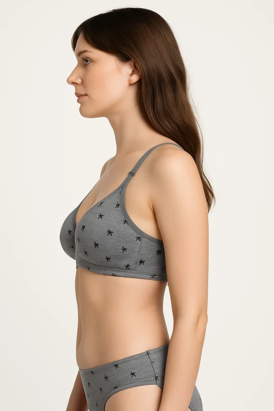 • Straps and Closure: The bra typically has adjustable straps for a personalized and comfortable fit. Closure type can vary, with some versions featuring a back hook-and-eye fastener, while others may be a pull-on, slip-on style.