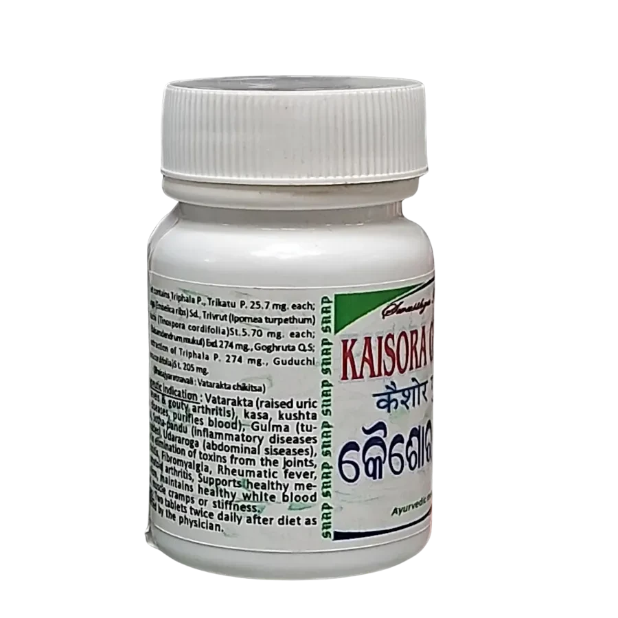 KAISORA GUGGULU is a traditional Ayurvedic formulation known for its therapeutic properties. It is commonly used to support various health concerns and promote overall wellness. Prepared with time-tested ingredients, KAISORA GUGGULU helps maintain the natural balance of the body and enhances vitality when taken regularly. Ideal for use in holistic and preventive healthcare, this remedy can be a valuable addition to your Ayurvedic lifestyle.