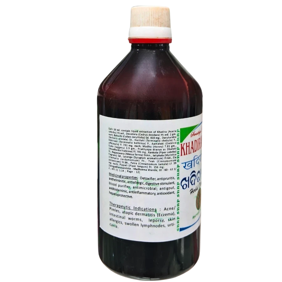 KHADIRARISTA is a traditional Ayurvedic formulation known for its therapeutic properties. It is commonly used to support various health concerns and promote overall wellness. Prepared with time-tested ingredients, KHADIRARISTA helps maintain the natural balance of the body and enhances vitality when taken regularly. Ideal for use in holistic and preventive healthcare, this remedy can be a valuable addition to your Ayurvedic lifestyle.