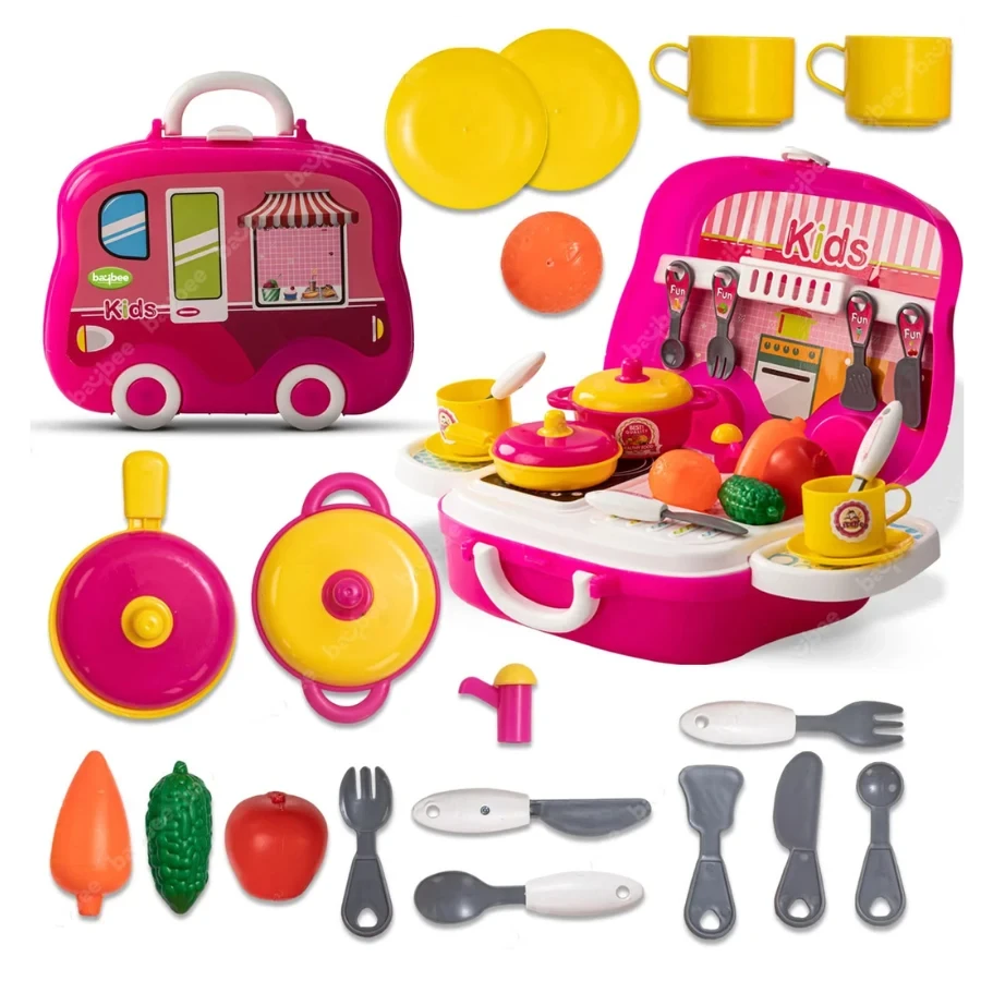 A mini kitchen play set that lets kids cook up imaginary meals. Encourages creativity, social skills, and fine motor development.