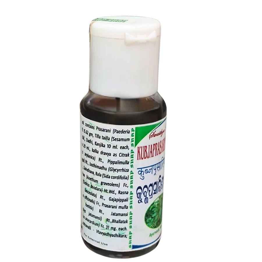 KUBJAPRASARINI TAILLA 60 ml. is a traditional Ayurvedic formulation known for its therapeutic properties. It is commonly used to support various health concerns and promote overall wellness. Prepared with time-tested ingredients, KUBJAPRASARINI TAILLA 60 ml. helps maintain the natural balance of the body and enhances vitality when taken regularly. Ideal for use in holistic and preventive healthcare, this remedy can be a valuable addition to your Ayurvedic lifestyle.