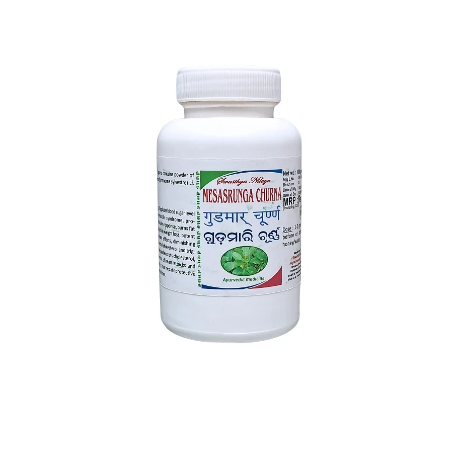 MESASRINGA CHURNA is a traditional Ayurvedic formulation known for its therapeutic properties. It is commonly used to support various health concerns and promote overall wellness. Prepared with time-tested ingredients, MESASRINGA CHURNA helps maintain the natural balance of the body and enhances vitality when taken regularly. Ideal for use in holistic and preventive healthcare, this remedy can be a valuable addition to your Ayurvedic lifestyle.