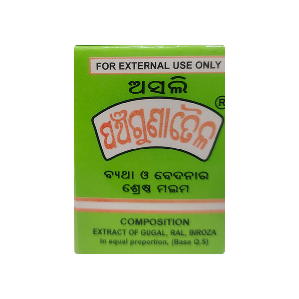 Panchaguna Tail is an Ayurvedic massage oil formulated with five powerful herbal ingredients to relieve joint pain, swelling, and stiffness. Regular massage improves blood circulation, strengthens muscles, and promotes joint flexibility.