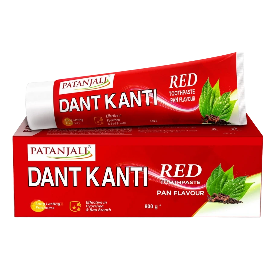 The Patanjali Dant Kanti Red Toothpaste uses a blend of traditional Ayurvedic ingredients and essential oils. According to Patanjali Ayurved, the ingredients list includes: