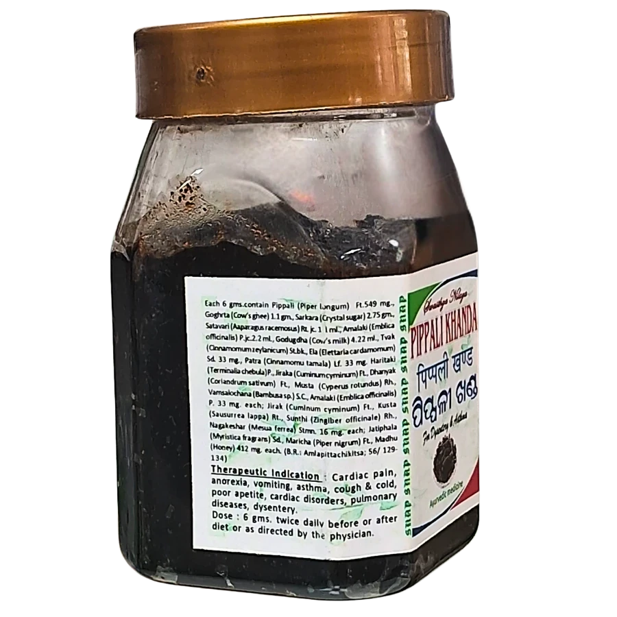 PIPPALIKHANDA is a traditional Ayurvedic formulation known for its therapeutic properties. It is commonly used to support various health concerns and promote overall wellness. Prepared with time-tested ingredients, PIPPALIKHANDA helps maintain the natural balance of the body and enhances vitality when taken regularly. Ideal for use in holistic and preventive healthcare, this remedy can be a valuable addition to your Ayurvedic lifestyle.