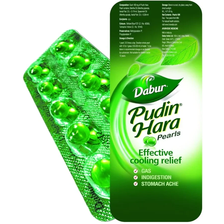 An Ayurvedic remedy crafted for quick digestive wellness, Pudin Hara Pearls harness the cooling potency of mint to provide rapid relief from stomach discomfort, bloating, acidity, gas, and indigestion. Packaged as small, easy-to-swallow capsules, they’re perfect for on-the-go comfort.