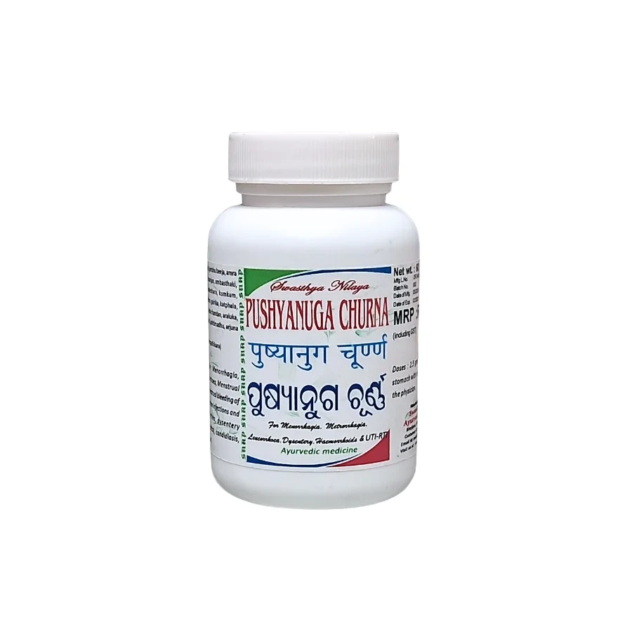 PUSHYANUGA CHURNA is a traditional Ayurvedic formulation known for its therapeutic properties. It is commonly used to support various health concerns and promote overall wellness. Prepared with time-tested ingredients, PUSHYANUGA CHURNA helps maintain the natural balance of the body and enhances vitality when taken regularly. Ideal for use in holistic and preventive healthcare, this remedy can be a valuable addition to your Ayurvedic lifestyle.