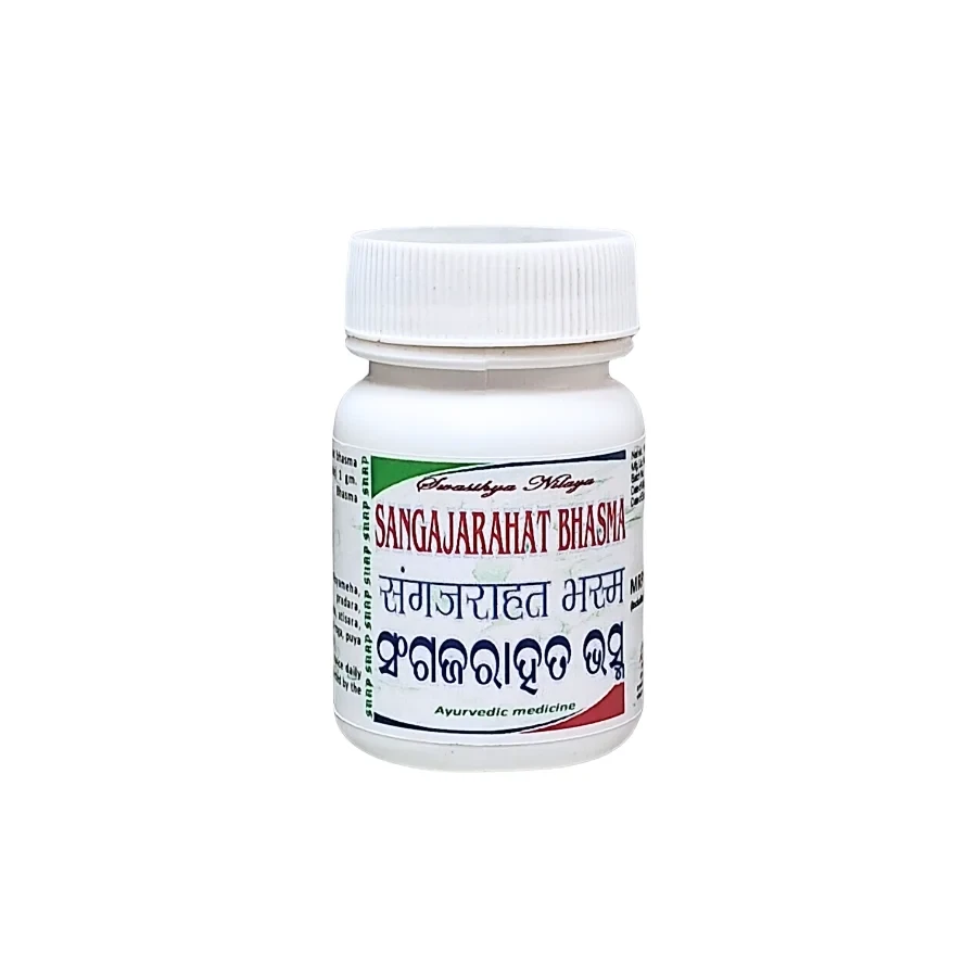 SANGAJARAHAT BHASMA 10 GM' is a traditional Ayurvedic formulation known for its therapeutic properties. It is commonly used to support various health concerns and promote overall wellness. Prepared with time-tested ingredients, SANGAJARAHAT BHASMA 10 GM' helps maintain the natural balance of the body and enhances vitality when taken regularly. Ideal for use in holistic and preventive healthcare, this remedy can be a valuable addition to your Ayurvedic lifestyle.