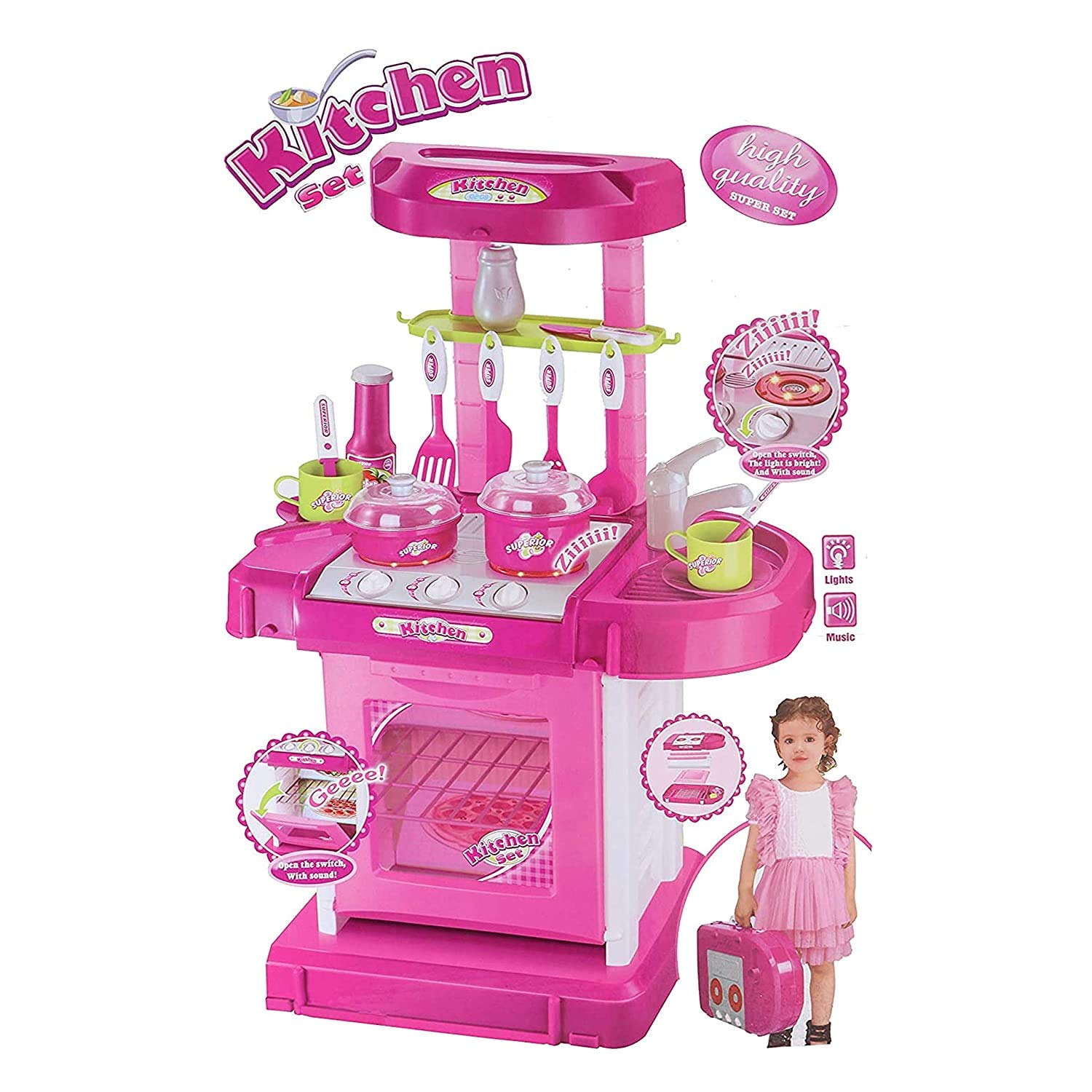 Sona Kitchen Set is a pretend play kitchen setup with accessories that inspire creativity and early cooking roleplay.