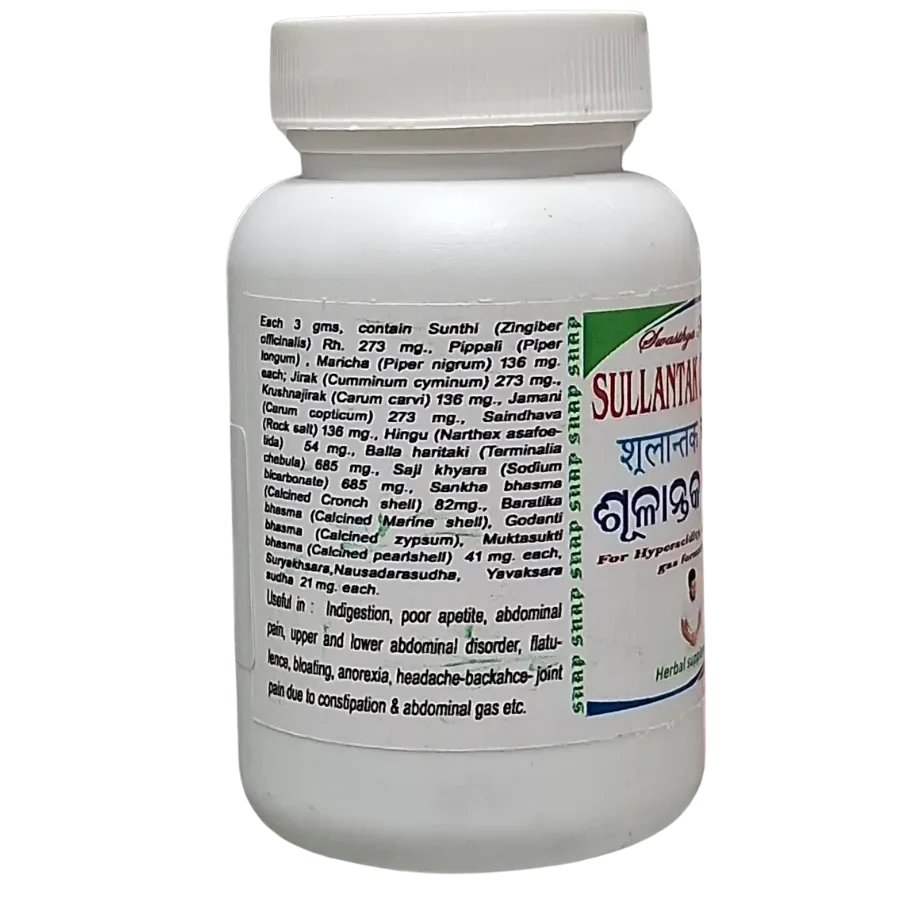 SULLANTAK CHURNA is a traditional Ayurvedic formulation known for its therapeutic properties. It is commonly used to support various health concerns and promote overall wellness. Prepared with time-tested ingredients, SULLANTAK CHURNA helps maintain the natural balance of the body and enhances vitality when taken regularly. Ideal for use in holistic and preventive healthcare, this remedy can be a valuable addition to your Ayurvedic lifestyle.