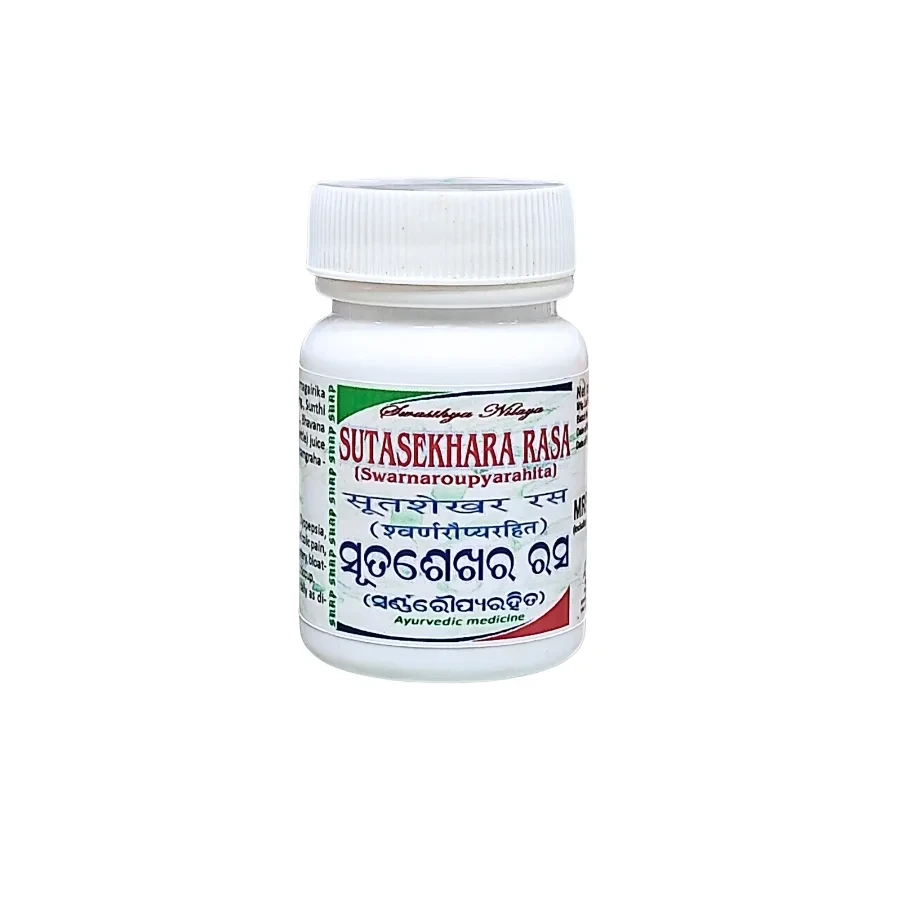 SUTASEKHARA RASA is a traditional Ayurvedic formulation known for its therapeutic properties. It is commonly used to support various health concerns and promote overall wellness. Prepared with time-tested ingredients, SUTASEKHARA RASA helps maintain the natural balance of the body and enhances vitality when taken regularly. Ideal for use in holistic and preventive healthcare, this remedy can be a valuable addition to your Ayurvedic lifestyle.