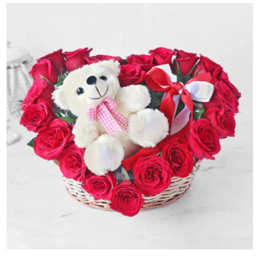 Teddy with Rose Design Heart is a special teddy bear holding a rose and heart, perfect for expressing love or gratitude.