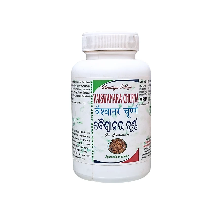 VAISWANARA CHURNA is a traditional Ayurvedic formulation known for its therapeutic properties. It is commonly used to support various health concerns and promote overall wellness. Prepared with time-tested ingredients, VAISWANARA CHURNA helps maintain the natural balance of the body and enhances vitality when taken regularly. Ideal for use in holistic and preventive healthcare, this remedy can be a valuable addition to your Ayurvedic lifestyle.