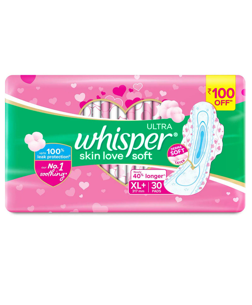 Whisper Ultra H+C XL+ Sanitary Pads are specially designed for heavy flow days, offering superior protection, comfort, and hygiene. With XL+ length and wider back coverage, these pads ensure 100% stain protection and confidence all day long. The super absorbent gel core locks in wetness and odor, while the soft top sheet keeps your skin dry and rash-free. Its wings provide a secure fit and prevent side leaks, making it a perfect choice for active days and nights.