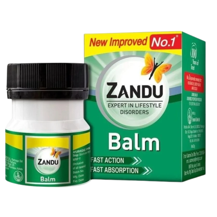 Zandu Balm is an iconic Ayurvedic pain relief balm for headaches, colds, and body aches. With powerful herbal oils, it provides quick comfort and a refreshing aroma to uplift your mood while easing discomfort.